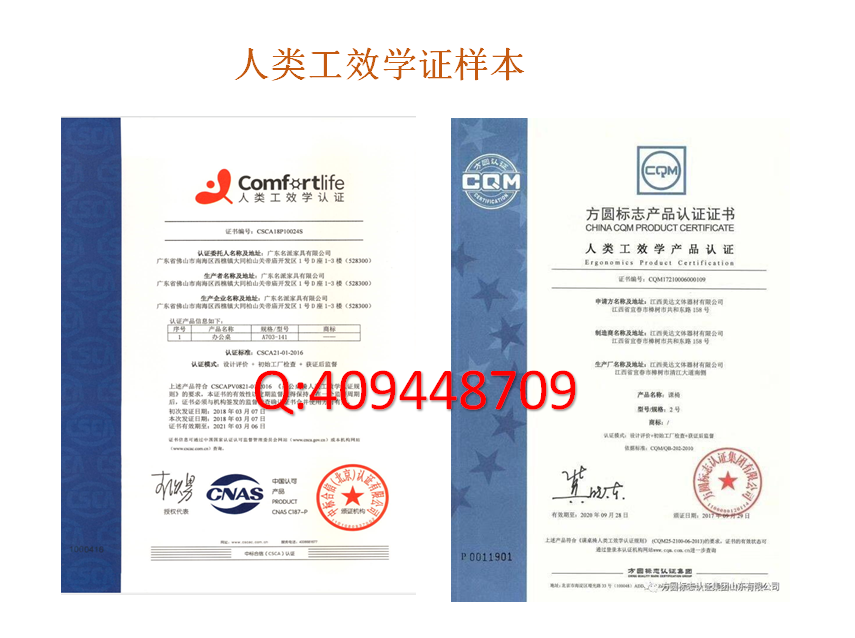 人類工效學(xué)認(rèn)證的證書樣本見上圖。