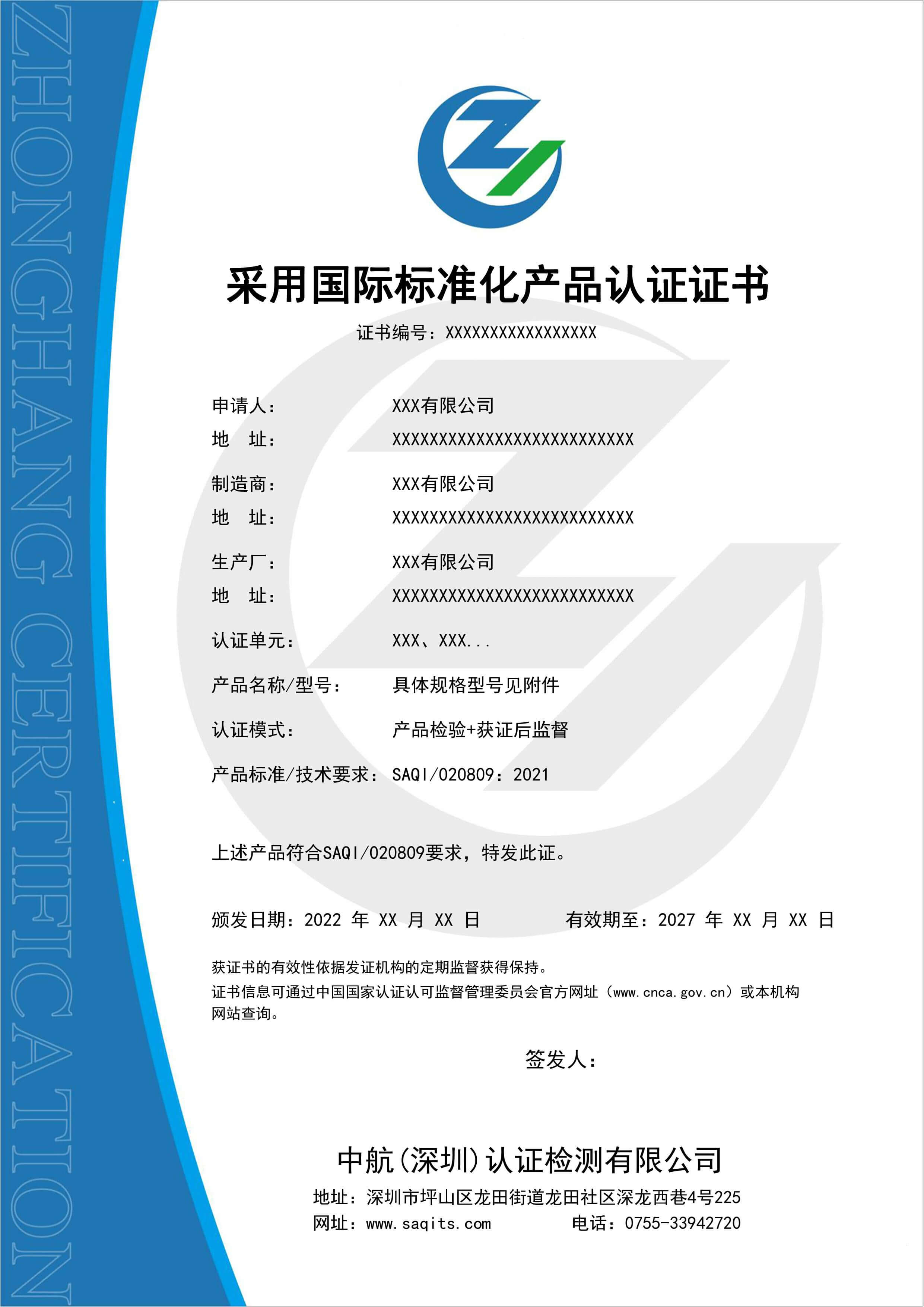 • 采用國際標(biāo)準(zhǔn)化產(chǎn)品認(rèn)證證書