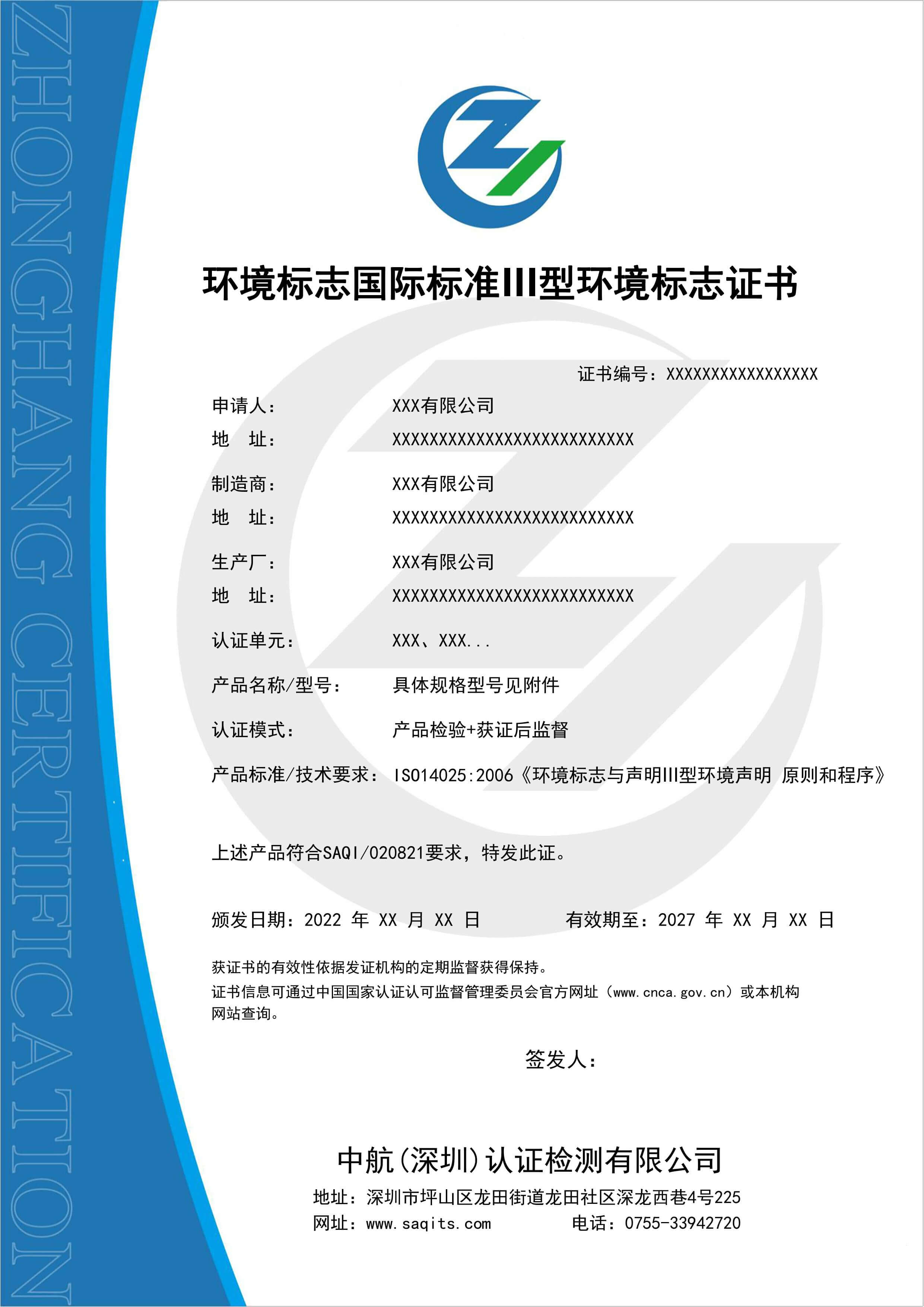 • 環(huán)境標(biāo)志國際標(biāo)準(zhǔn)III型環(huán)境標(biāo)志證書